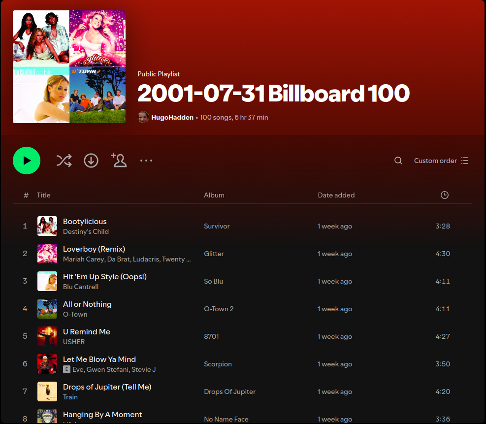 Creates a playlist of the top 100 songs on the Billboard of the chosen date.